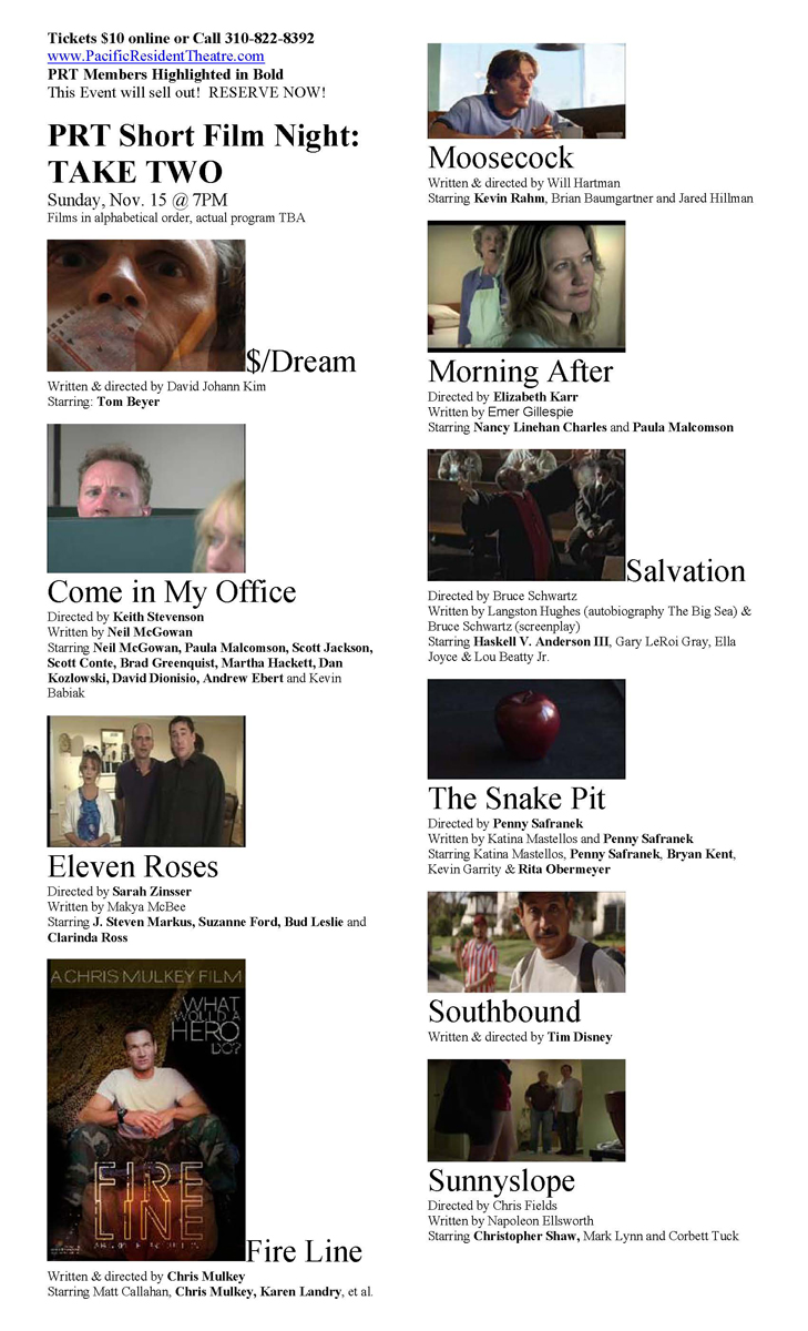 Main Stage Bonus Production: Pacific Resident Theatre & The PRT Writers’ Group New Work Series. The purpose of Our Writer’s Group at PRT is to share our work, offer each other unique perspectives, and nurture the creative writing process in a positive, honest way. We listen, motivate, encourage and develop the writer’s craft.