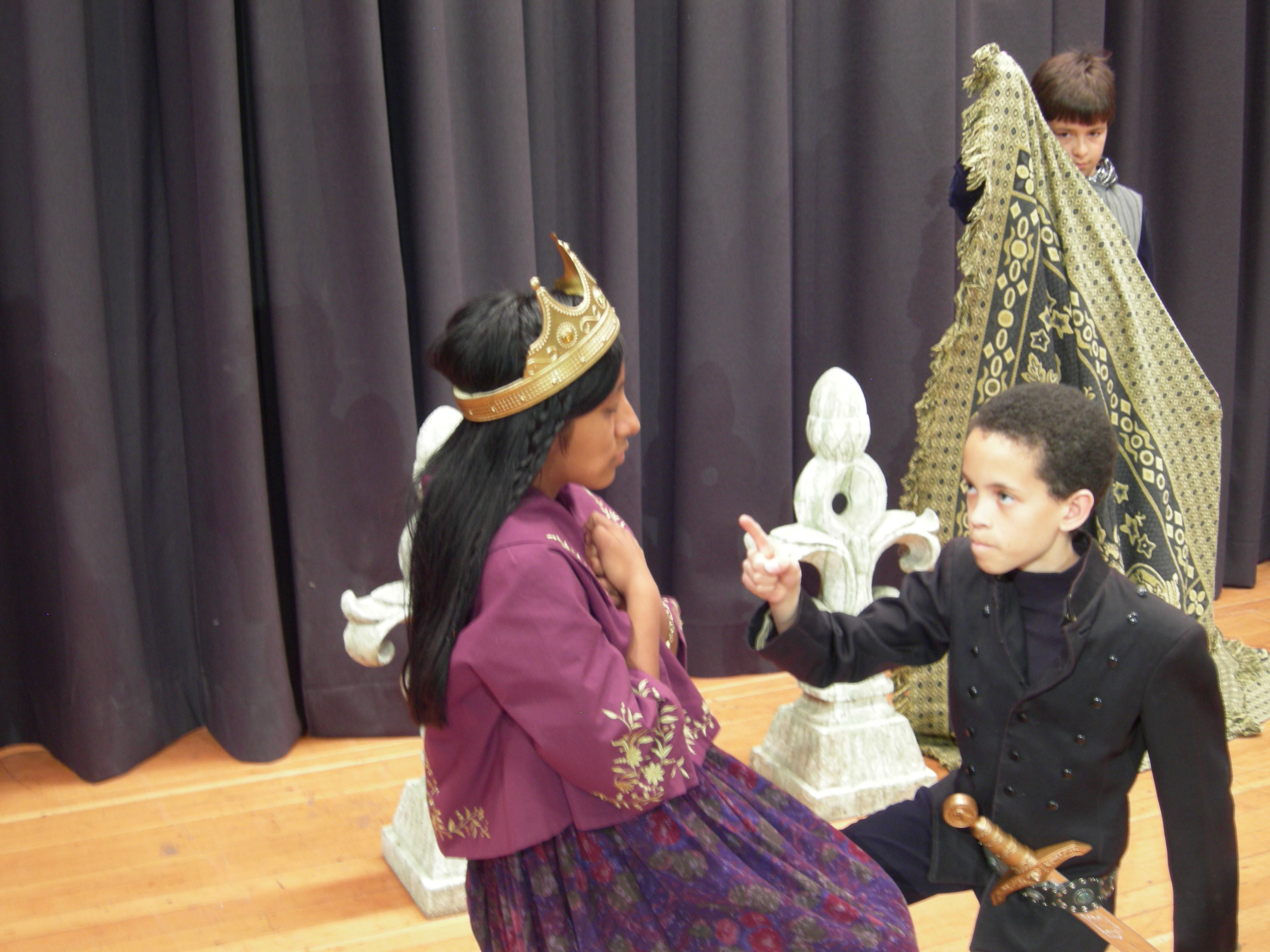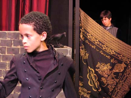 Ghosts and sword fights and madness and storytellers talking back to the audience. These and so much more are in this 55-minute adaptation of Shakespeare’s HAMLET, performed by 6th and 7th graders from Makr Twain Middle School. Hamlet is barely home from college to attend his father’s funeral, when he’s slammed with the fact that his mother has already married Hamlet’s uncle! Hamlet smells a rat and the ghost of his father appearing to him seals the deal. He promises to avenge his father’s death. You don’t have to know Shakespeare to be enamored of this rendition of it!