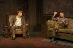 Jude Ciccolella (in chair) and Jason Downs in Pacific Resident Theatre’s THE HOMECOMING.Cienfuegos uses Norman Scott’s clean, spare living-room boxing-ring of a set and coy, just-enough-to-see lighting to arrange bodies for declamation, intimidation, obfuscation, revelation. It’s almost as fine a play to watch as to listen to, but given the director’s excellent casting and work with actors (and of course the vivid script) it’s about the words, really, as it should be.