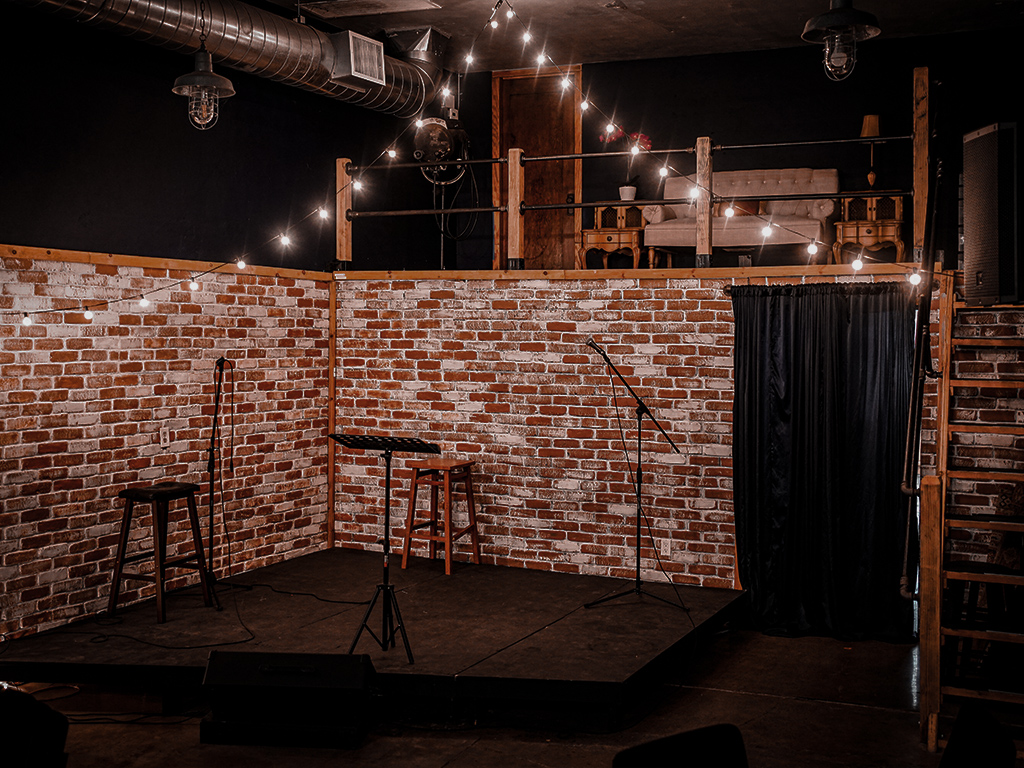705 1/2 is our 39-seat black box theater. The backstage area is equipped with a bathroom, kitchenette , and lofted dressing room space. Perfect for readings, rehearsals, workshops and performances.